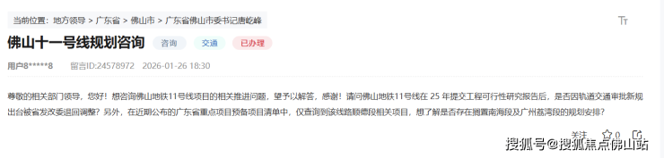 近日,有网友在领导留言板上咨询关于佛山十一号线规划。