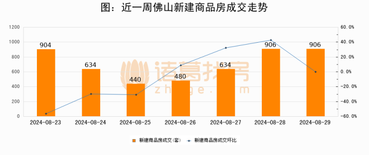根据佛山市住房保障和房产信息网数据显示,2024年08月29日佛山新建商品房成交906套,较昨日持平