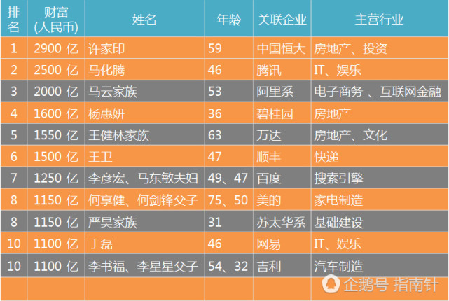 上图为今年胡润榜的中国十大富豪,不出意料,十大富豪中广东富豪占了6席(橙色区域),大当家和二当家的交椅,都被深圳富豪坐上。更加引人注目的是,80后碧桂园女掌门,来自佛山顺德的杨惠妍以1600亿的财富总额赶超前首富王健林,坐上内地富豪榜第四把交椅。