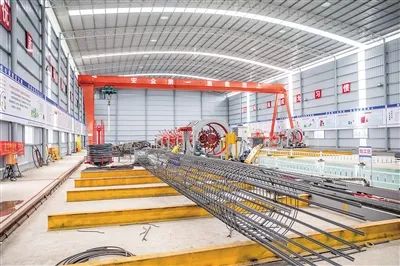 江门至珠三角枢纽(广州新)机场段项目内部的钢筋工厂。