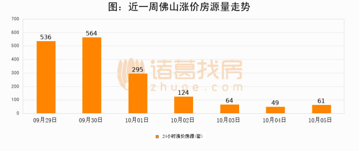 根据诸葛找房数据显示,佛山24小时涨价房源量为61套,较10月04日增加12套,环比上涨24.5%。与此同时,涨价房源占比小幅扩大,业主信心有所提升。