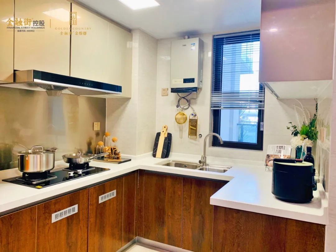 又如,厨房台设计防溢水台面、不锈钢防腐易洁板,只为省心省力。贴心配置了烟感燃气报警系统、水淹报警系统等,安全保障,居家无忧。