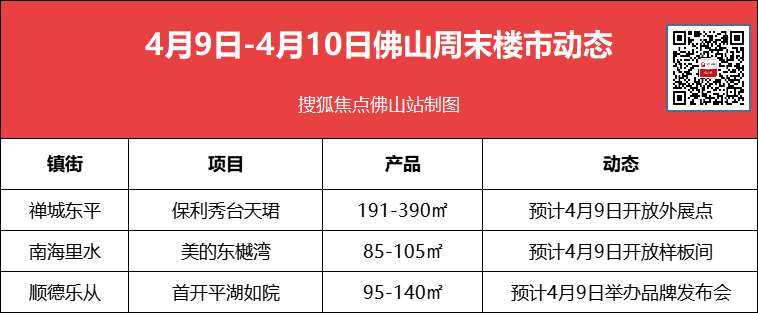 据小狐不完全统计,佛山楼市本周末(4月9日-4月10日),仅有3盘有营销节点,以开放展点为主。