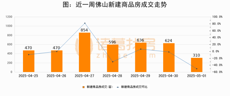 【佛山成交日报】05月01日新房成交310套、二手房1204套;