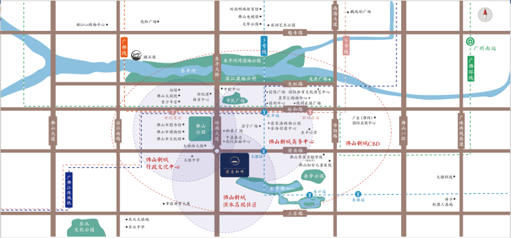 洞悉佛山城势向南的发展脉络,建发和鸣瞄准佛山新城CBD中心区。三龙湾风口、千亿市政配套投入下,佛山新城被誉为全市少有有能力与珠江新城一较高下的板块。而建发和鸣正落子新城行政文化中心、商务中心、滨水高端住区三圈交汇处。