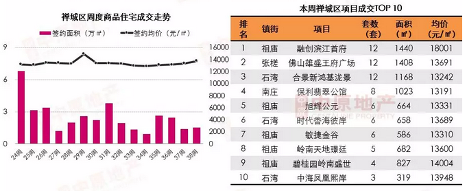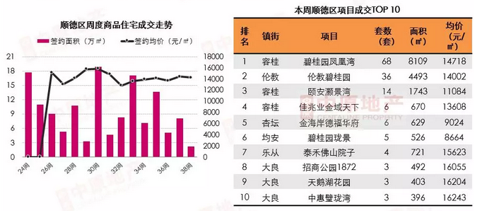 “金九”第三周(9.17-9.23),佛山楼市整体去化一般,虽然房企们在中秋周末纷纷加推新货,但因网签滞后,成交量不容乐观,成交均价小幅度下跌。据据佛山中原地产统计,上周(9.17-9.23)佛山五区住宅成交套数仅1209,环比下跌近4成。其中,南海网签量价均位居五区之首。