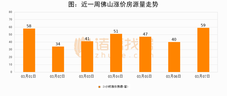 根据诸葛找房数据显示,佛山24小时涨价房源量为59套,较03月06日增加19套,环比上涨47.5%。与此同时,涨价房源占比小幅扩大,业主信心有所提升。