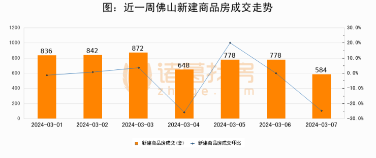 【佛山成交日报】03月07日新房成交584套、二手房434套;涨价房源59套