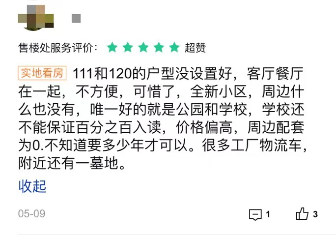 更有网友指出项目对面可见墓园,装修也是一言难尽。
