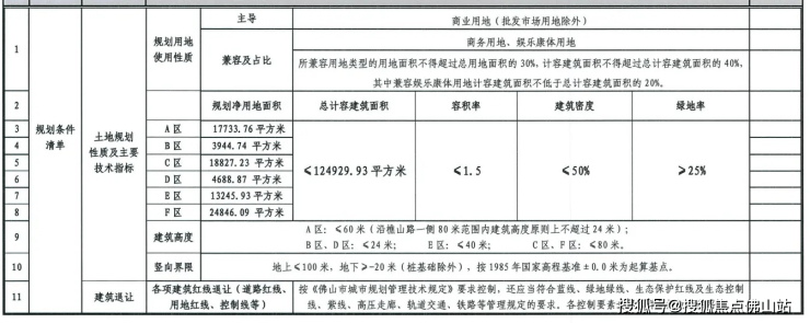 出让文件显示,项目占地约83286.62㎡,分为A、B、C、D、E、F区,总计容建面≤124929.93㎡。