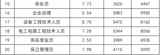 从高位数来看,排名较高的三个职业由高到低依次是:水利水电建筑工程技术人员32994元/月,中医骨伤科医师32290元/月,信贷审核专业人员28738元/月。