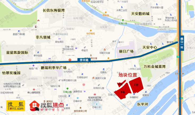 地块位于东平河岸,与万科金域蓝湾一路之隔,毗邻地铁4号线站点,距离季华东路仅400米,直通佛山一环,交通便捷。沿季华路往西行依次有丽日广场、鹏瑞利广场、印象城等多个商圈,商业配套成熟。值得一提的是,地块临近东平河,尽享江景资源。
