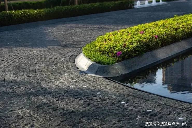 比如对标北京宝格丽酒店、广州永庆坊·金声广场等高端酒店或知名建筑设计,在商业组团与住宅组团之间的支四路,不惜成本全部采用马蹄石铺设,造价远高于市面普通沥青路,不仅更稳固不易塌陷,还能将道路化身为可游、可赏的空间,尊崇感油然而生。
