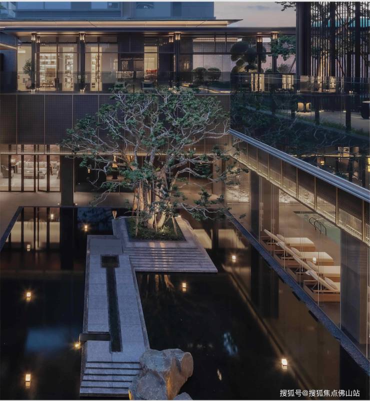 比如穿过大堂景墙前摆设的两颗迎客松,设计团队精挑细选一对相互倚靠、对称且孪生的造型罗汉松(一棵姿态向右、一棵姿态向左,并要求两棵形态相似,加剧树形选择的难度),且每棵价值近十万元,成对种植,也寓意“好事成双、十全十美”,足见精益求精的匠人态度。更在每栋楼宇之下栽种了日本冬青,寓意长寿和健康。居于此,目之所及皆是绿意,草木清香扑鼻而来。