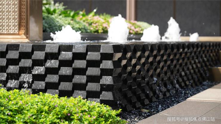 比如西门楼入口借鉴北京瑰丽酒店设计理念,打造出超长尺度横向舒展的迎宾造型。入口雕塑更是花重金打造,以珠江为灵感启发,延续水脉元素,寓意富足与活力。立方体顶点立于水面,在日光下每一面都璀璨夺目,为千灯湖轴线注入新的艺术色彩。