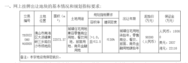 今日,从佛山市公共资源交易中心官网获悉,南海大沥黄岐金沙洲白沙市场挂牌一宗超2.2万㎡商住地,起拍价90300万元,折合楼面价约16001.15元/㎡,拟于年后2月28日10:00进行网拍。