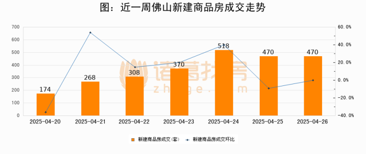 根据佛山市住房保障和房产信息网数据显示,2025年04月26日佛山新建商品房成交470套,较昨日持平