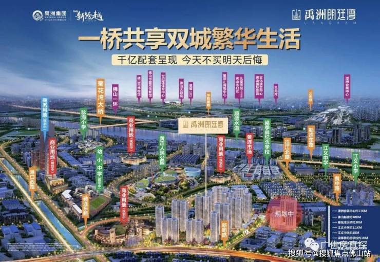 六大核心价值①15分钟立享新城千亿配套佛山未来城市中心②菊花湾大桥、华阳路快速直达佛山新城③约6万亩㎡滨水新城片区,勒流腾飞添利好④仅1/5广州价劲省100万佛山新城价⑤建面约40万方大城约6万㎡全龄化园林⑥片区仅有超宽超百米楼距 开发商:禹洲集团 项目规划占地:约11万㎡ 建筑面积:约40万㎡ 绿化率:30% 容积率:3 规划楼栋:18栋高层洋房(一期) 物业公司:禹洲物业 物业费:2.7元/㎡/月区位图