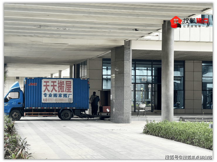 而佛山公积金管理中心位于E栋的四层,有工人在该栋的一层进行装修,部分则正在搬运重物。