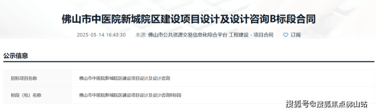 近期,佛山市中医院新城院区建设项目设计及设计咨询的A、B标段中标结果已公示。