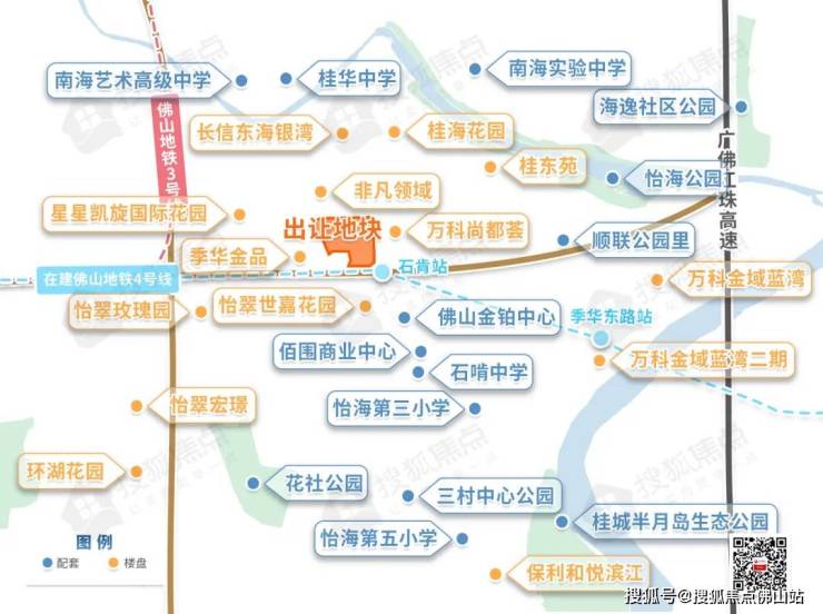 地块处于桂城与禅城交界,东侧有佛山地铁6号线,进南侧有在建地铁4号线石肯站经过。