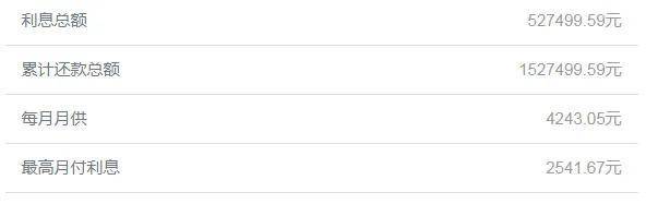 同样是100万贷款,分30年期,3.10% 利率,每月月供4270元,利息总额约53.7万。
