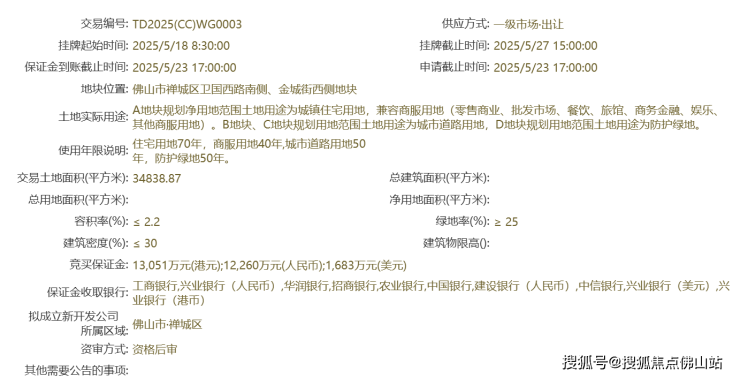 9300元/㎡起拍!禅城市区宅地挂牌,一年内动工!