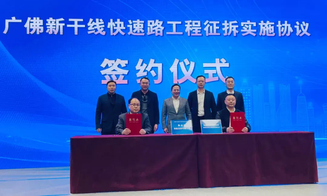 现场,佛山市南海区重点基础设施建设征地拆迁领导小组办公室和佛山市建盈发展有限公司举行签约仪式,双方就广佛新干线快速路征拆工作凝聚共识。