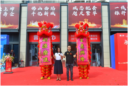 江景样板房以全新面貌接待各界来宾,新时代的背景下谱写新的篇章。伴随着锣鼓喧天的醒狮表演,瑞狮点“金”,雄狮吐“瑞”,象征着如意吉祥、繁荣富贵。