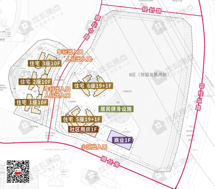 此外,一期南侧建有1座商业体,5、6栋住宅之间规划建一处居民健身设施。