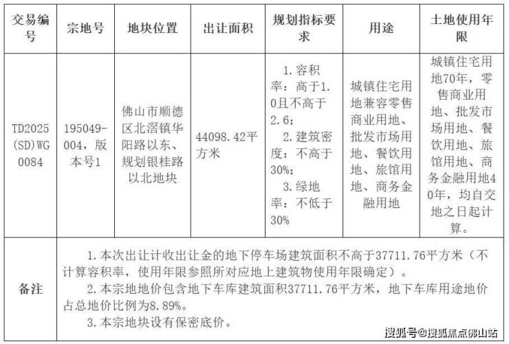 佛铁投以70522万摘下北滘华阳路以东,折合楼面价约6151元/㎡。