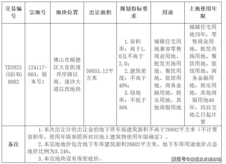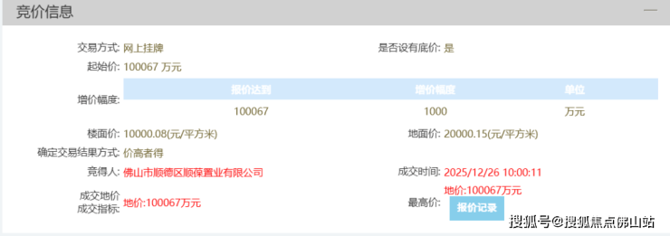 佛山市顺德区顺葆置业有限公司以100067万夺得大良顺德学院站地块,折合楼面价约1万/㎡。