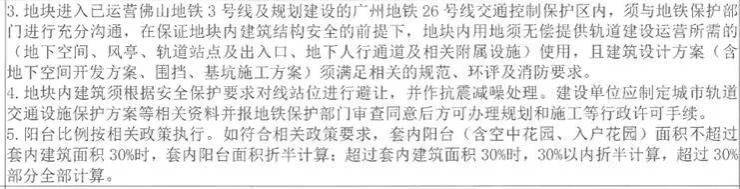 此外,地块进入已运营佛山地铁3号线及规划建设的广州地铁26号线交通控制保护区内,须与地铁部门进行充分沟通。