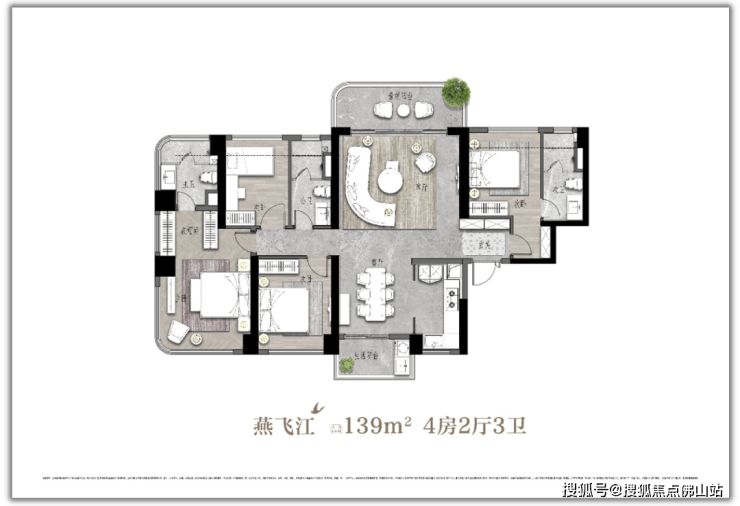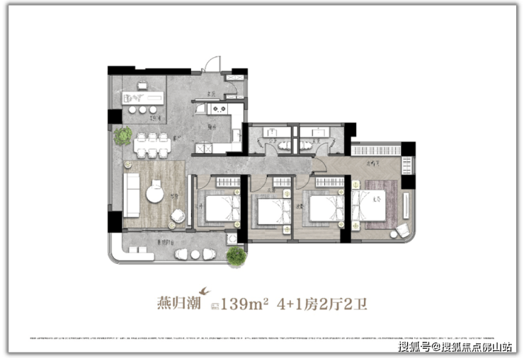 建面约139㎡有两个户型,分别是燕归潮、燕飞江,而前者是做了样板间。
