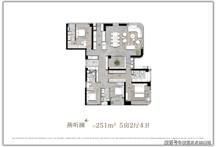 大户型方面,建面约251㎡,整个户型走廊较多,当然这是大平层,适当的浪费是必要的。