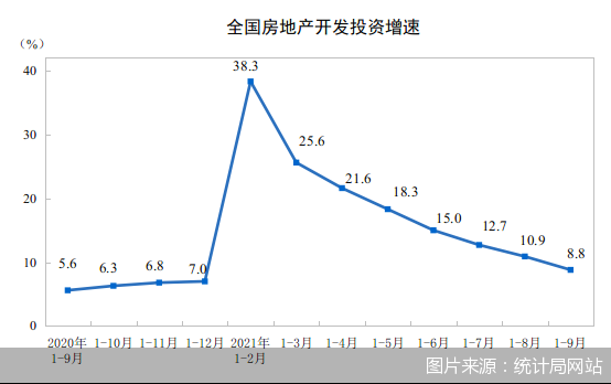 1-9月,全国房地产开发投资112568亿元,同比增长8.8%;比2019年1-9月增长14.9%,两年平均增长7.2%。其中,住宅投资84906亿元,增长10.9%。