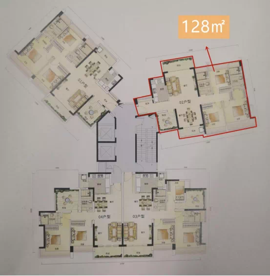 项目首推B区1、2栋住宅,层高24层,2梯4户,涵盖102㎡2+1房、125㎡3+1房户型,带装修发售,吹风价16000-17000元/㎡。