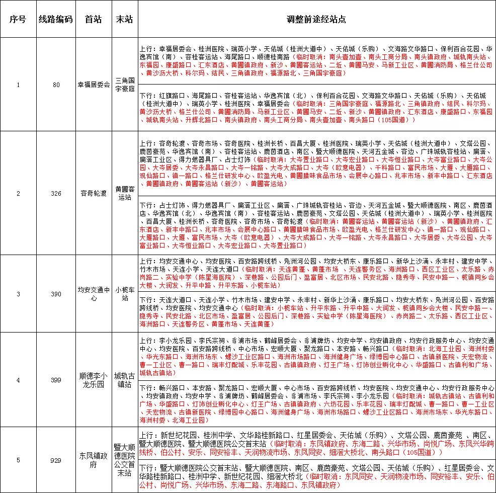 佛山市交通运输局关于80、326、390、399、929等5条公交线路临时调整的通告