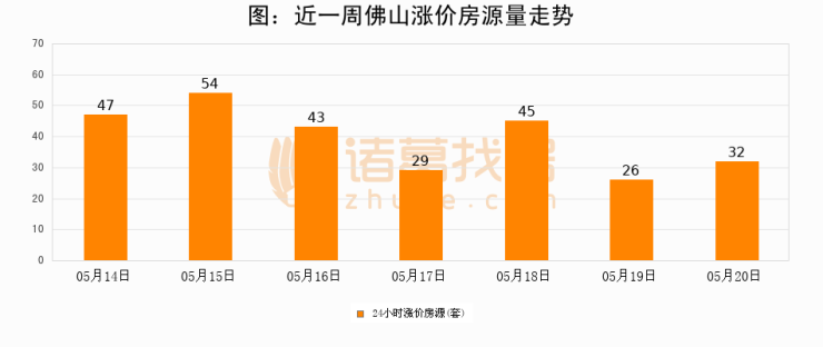 根据诸葛找房数据显示,佛山24小时涨价房源量为32套,较05月19日增加6套,环比上涨23.1%。与此同时,涨价房源占比小幅扩大,业主信心有所提升。