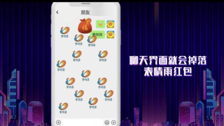 以表情雨为例,网友只要在微信聊天时提及“碧桂园”“凤凰云”“五爱五家”任一关键词,便可看到随机掉落的碧桂园表情雨,点击其中福袋,即可获得现金红包、红包封面或购房优惠券。