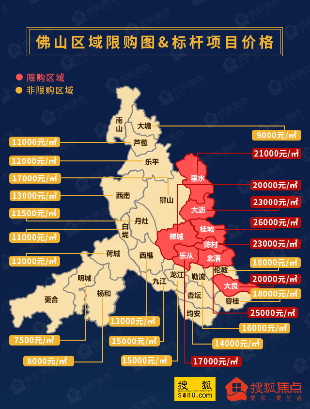 从目前的市场来看,仅有三水、高明两区房价在1万元/平左右。