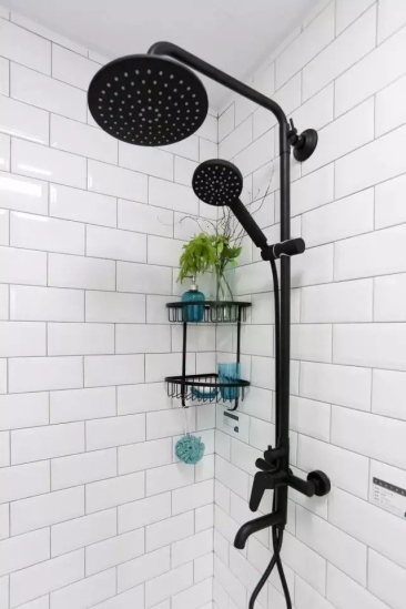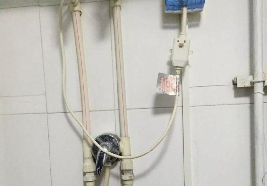 遮住了顶面之后,我们往墙面看看,你家的花洒和热水器的管子都露在外面,真的好看吗?就像这样