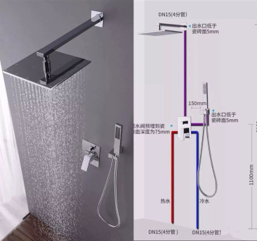 进水管埋进墙里,混水阀露在外面,是现在最普遍的安装方式。