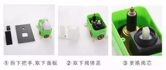 ②如果是阀芯问题,出现堵塞、漏水等现象,可以拆开装饰盖,检查水路跟明装花洒是一样的操作,然后,更换阀芯就行。