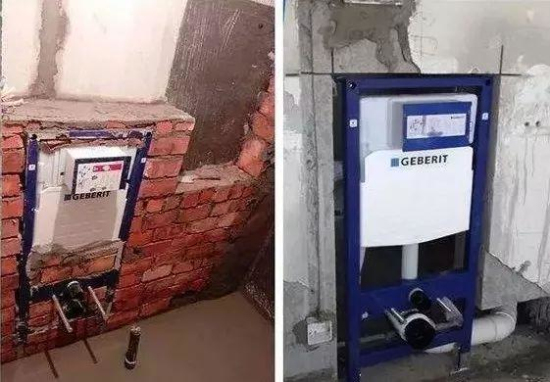 如果是承重墙,要另外砌堵假墙,在假墙里预留管道和马桶的安装位置;如果是非承重墙,可以直接在墙壁上开个洞来安装支架。
