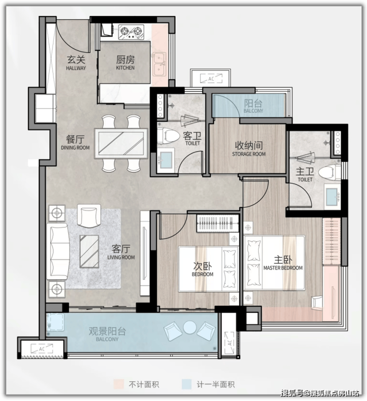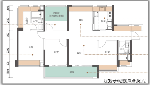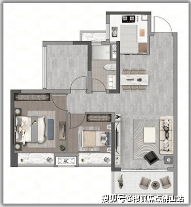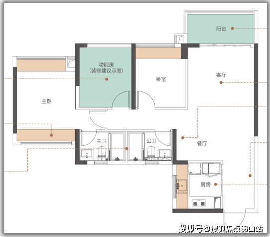 阳台为东南向,不过仅有一个卫生间,且不是干湿分区,多少会影响生活的便利性。
