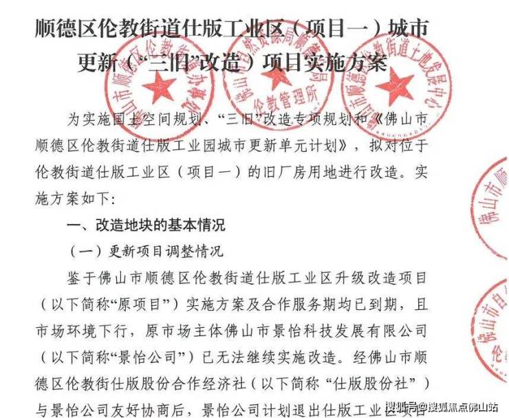 最新的《伦教街道仕版工业区城市更新项目实施方案》中提到,原市场主体佛山市景怡科技发展有限公司已无法继续实施改造,计划退出仕版工业区项目市场改造主体资格。