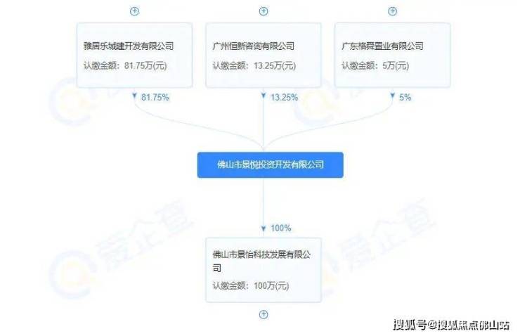 从股份架构来看,该公司由佛山市景悦投资开发有限公司100%控股,背后有三大股东,其中雅居乐城建占比81.75%。