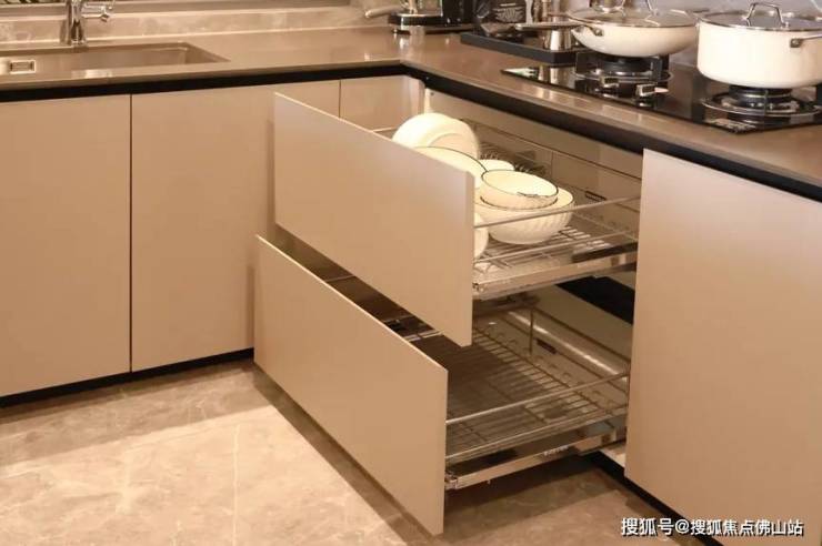 厨房除了配套常规的三件套,更隐藏了净水机/垃圾粉碎机/洗碗机等。