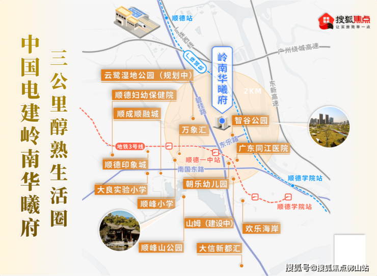 从周边配套图可以看到,电建岭南华曦府有优质“书包”、医疗资源,步行就可到达地铁3号线顺德一中站,周边更有五大商圈配套。
